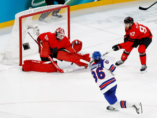 The Americans capitalized on a turnover in their end to create a three-on-one, and Hughes finished the play with a low shot under the left pad of Jordan Binnington.
