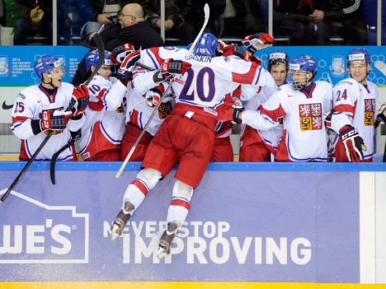 Tomáš Hyka and Marek Hrbas were the marksmen as the Czechs pulled into a tie for first place with three teams, including Finland, atop the standings. Russian-born Dmitrij Jaškin added an empty netter with 4.1 seconds remaining.