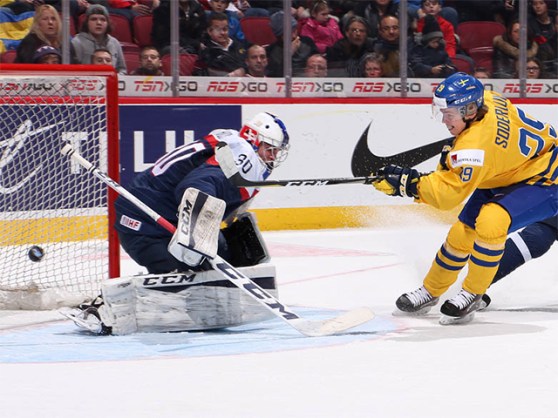 Söderlund, an 18-year-old from Skelleftea, gave Sweden a 2-0 lead at 16:28 with blazing right-wing speed, beating Slovak defenceman Martin Fehérváry wide and cutting in to fire it home. It was the World Junior rookie’s first goal at this level.