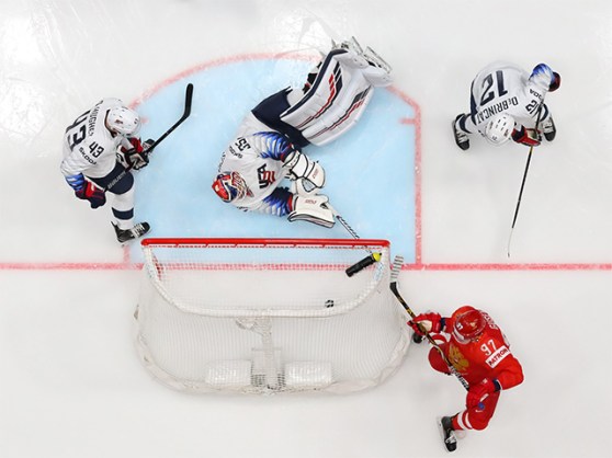 Curbing the U.S.’s momentum with a deadly Russian rush, Grigorenko swept into the offensive zone to take Malkin’s cross-ice pass from the side boards, and scored with a great top-corner shot at 7:02.