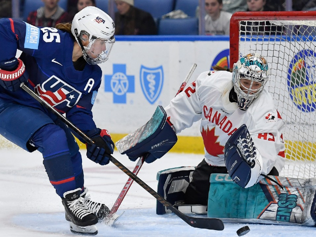 The United States feasted on Canada’s porous defence in a 10-4 thrashing to take the women’s hockey Rivalry Series on Wednesday.