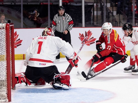 In the first of three test runs before the World Junior Hockey Championship opens next week, Canada cruised past Switzerland 6-0 at the Avenir Centre on Monday.